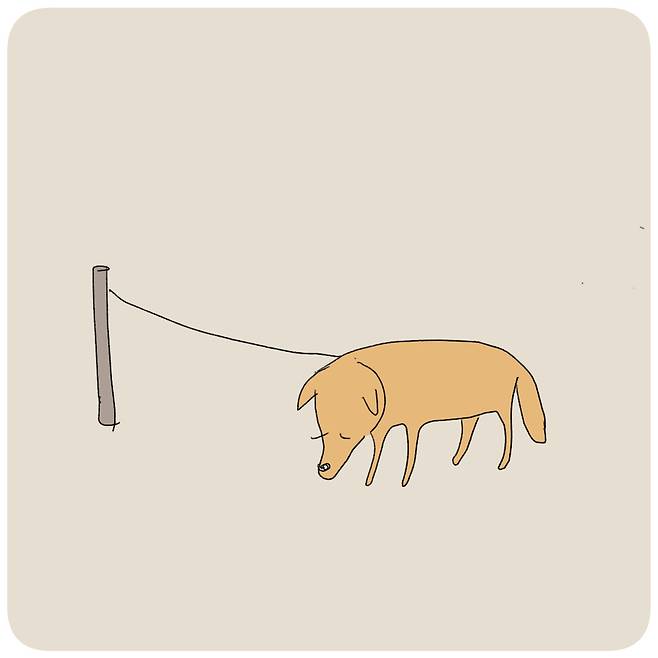 얼마 지나지 않아 다시 집회에 참여했을 때, 누렁이는 건물 한쪽에 묶여 있었죠.