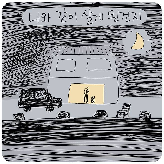 제주에 사는 작가 이연수씨는 2012년 제주 강정 해군기지 반대 집회 현장에서 발랄하게 뛰어다니던 강아지를 만났습니다. 얼마 지나지 않아 다시 집회에 참여했을 때, 누렁이는 건물 한쪽에 묶여 있었죠. 마을 사람들에게 연유를 물으니 해군기지 반대 시위를 하던 한 외국인이 키우던 개인데, 그가 강제 출국 당하며 홀로 남았다고 해요. 그렇게 ‘냇길이’와 이씨의 인연이 이어졌습니다.