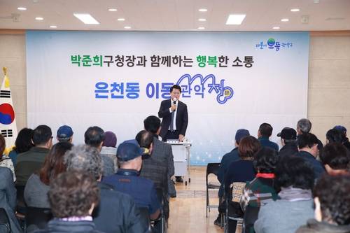 지난 11월 7일 관악구(구청장 박준희) 난향동 주민센터에서 열린 '이동 관악청(聽)'에 참석한 박준희 관악구청장이 주민들의 황톳길 조성 요청에 답했다.