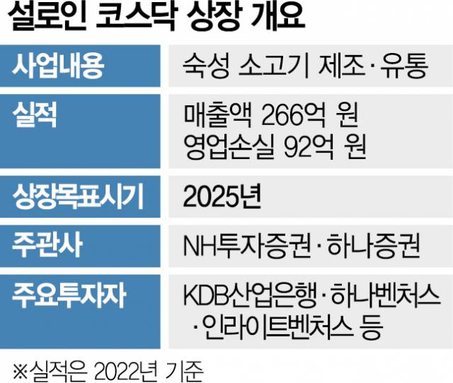 30일 투자은행(IB) 업계에 따르면 설로인은 최근 상장 주관사로 NH투자증권(005940)과 하나증권을 선정했다. NH투자증권이 대표 주관사다. 이르면 내년 말 한국거래소에 상장 예비 심사 청구서를 제출할 계획이다. 설로인이 상장에 성공하면 한우 업계 1호가 된다.