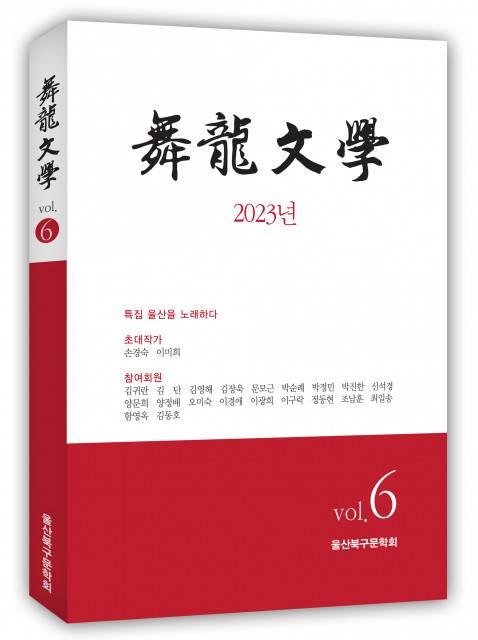 이번 무룡문학 6집은 회보로 나온 ‘울산북구문학회 이모저모’를 비롯해 △특집 ‘울산을 노래하다’ △초대시 △회원시 △회원시조 △기행문 △중편소설 △편집후기 순으로 편집됐는데, 분야별 참가문인은 다음과 같다.