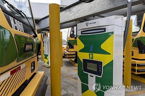 epa11002628 Battery-electric cargo-handling yard tractors are displayed next to their charging station at the Port of Long Beach, in Long Beach, California, USA, 29 November 2023. The largest West Coast demonstration project, the Port of Long Beach deploys 33 human-operated, zero-emission, battery-electric cargo handling yard tractors and charging infrastructure. The vehicles are funded partially by 50 million US dollar grant from the California Air Resources Board for the Sustainable Terminals Accelerating Regional Transformation (START). EPA/ETIENNE LAURENT