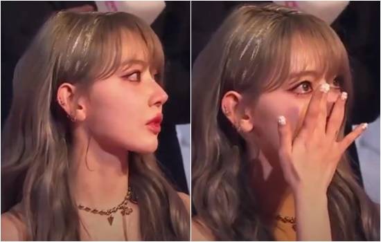 이때 르세라핌 사쿠라와 은채의 모습이 화면 가득 잡혔다. 사쿠라는 눈이 빨개진 상태로 눈물도 그렁그렁한 모습. 이내 흐르는 눈물을 손으로 닦는 모습으로 슬픔을 엿보였다.