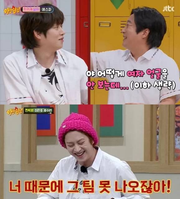 '아는 형님' 멤버들은 김희철을 겨냥하며 "너 때문에 그 팀(트와이스) 여기 못 나온다. 우린 보고 싶다", "(김희철이) 여자 얼굴 안 본다는 건 거짓말이다. 안 보는데 어떻게", "우리도 여사친인 줄 알았는데 다른 결과였다"고 이야기했다.
