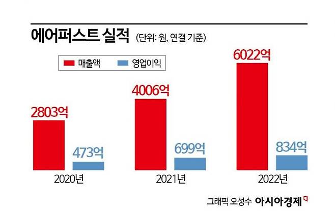 에어퍼스트는 가파른 실적 성장을 보이며 IMM PE의 알짜 투자 포트폴리오가 됐다. 인수 당시 2000억원대 초중반 수준이던 연간 매출은 지난해 말 6000억원을 넘어섰다. 같은 기간 영업이익은 400억원 내외에서 834억원으로 늘어났다. 매출과 영업이익 모두 인수 3년만에 2배 이상으로 커진 셈이다.