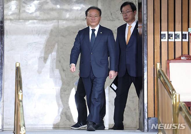 [서울=뉴시스] 추상철 기자 = 윤재옥 국민의힘 원내대표가 1일 오전 서울 여의도 국회에서 열린 원내대책회의에 참석하고 있다. 2023.12.01. scchoo@newsis.com