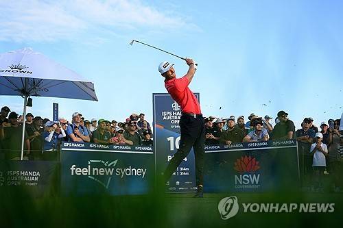 epa11004883 Adrian Meronk of Poland plays a shot from the 10th tee during Round 2 of the Australian Open 2023 at the Lakes Golf Club in Sydney, Australia, 01 December 2023. EPA/DAN HIMBRECHTS AUSTRALIA AND NEW ZEALAND OUT