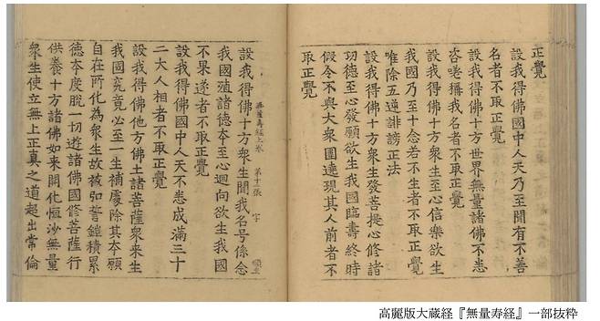 | ▲ 일본 조조지에서 소장하고 있는 고려대장경 목판 인쇄물 '무량수경'의 일부 |