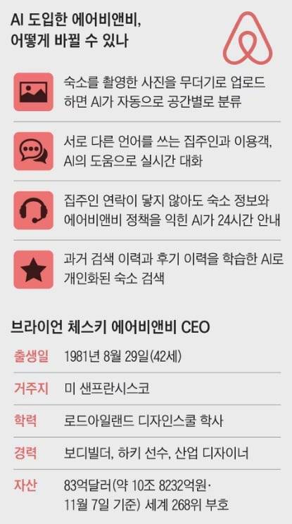 참고로 체스키 CEO는 천재 개발자가 득실거리는 실리콘밸리 창업계에서 이력이 특이한 인물로 꼽힙니다. 보디빌더, 하키 선수 출신인 데다 미국 명문 미대인 로드아일랜드 디자인스쿨을 나와 산업 디자이너로 일했습니다. 2007년 샌프란시스코의 높은 집값을 감당할 수 없어, 룸메이트였던 조 게비아 에어비앤비 공동 창업자와 거실에 매트리스를 깔고, 호텔을 못 잡은 대형 콘퍼런스 참가자들을 대상으로 ‘민박’ 사업을 시작했고요. 이것이 오늘날 에어비앤비의 시초가 됐습니다.