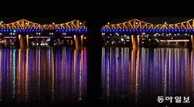 마치 까만 강물 위에 색색의 연필로 색칠을 해놓은 것 같아요. 예술작품 못지않은 솜씨입니다.