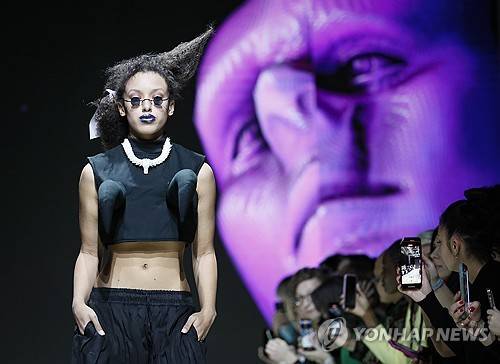 epa11005613 A model presents a creation by Indonesian fashion designer Aldre during a fashion show at the Parking Gallery of Zaryadye park, as part of the BRICS Fashion Summit in Moscow, Russia, 01 December 2023. BRICS Fashion summit runs from 28 November to 02 December 2023. EPA/YURI KOCHETKOV