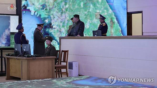 (서울=연합뉴스) 김정은 북한 국무위원장이 공군 기념일인 '항공절'을 맞아 지난달 30일 공군사령부와 제1공군사단 비행연대를 방문했다고 조선중앙TV가 1일 보도했다. [조선중앙TV 화면] 2023.12.1