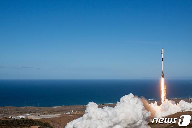 (서울=뉴스1) 박세연 기자 = 우리 군 최초 군사정찰위성 1호기가 2일 새벽 3시19분(한국시간) 미국 캘리포니아 소재 반덴버그 우주군기지에서 발사하고 있다. 군사정찰위성 1호기 발사 성공으로 우리 군은 독자적인 우주감시정찰 능력을 확보하였으며, 한국형 3축체계의 한 축인 킬체인 역량을 더욱 강화하게 되었다.(SpaceX 제공)2023.12.2/뉴스1