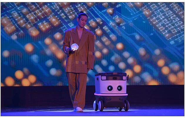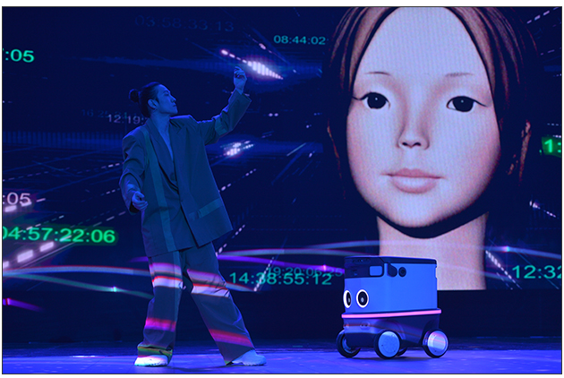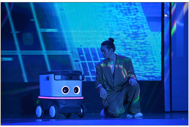 올해 저희 아트 프로젝트는 현대미술가 이완 작가의 연출로 '지능의 불꽃'이라는 제목 아래 이재윤 안무가, 로봇 '뉴비', 그리고 인공지능이 무대를 같이 꾸며주었는데요.