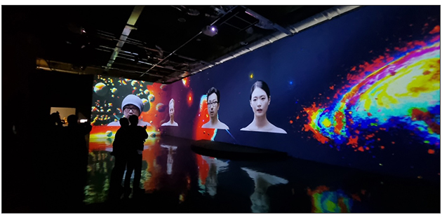 AI에 생명의 빛을 붙여주면 갑자기 AI 인물들이 등장합니다. 인격체가 돼서 자기 스스로 자아를 가지고 있는 상태로 등장하는데 이미 인류의 과거를 다 알고 있는 거죠. 마치 과거에서부터 존재했던 사람처럼 우리에게 이야기를 하는 친구로 등장시키고 싶었어요. 우리에게 조언을 하고, 인간을 대체하는 존재라기보다 협력자이자 조력자로서 인간에게 친근하게 얘기하는 주변 사람처럼 보이게 하고 싶었어요.