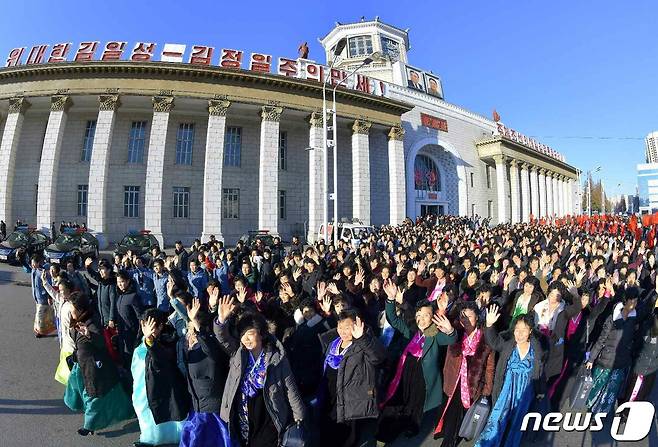 (평양 노동신문=뉴스1) = 북한 노동당 기관지 노동신문은 2일 제5차 전국어머니대회 참가자들이 전날 수도 평양에 도착했다고 보도했다. 신문은 "우리 시대 자랑이고 조국의 크나큰 힘인 사랑하는 어머니들에게 드리는 천만 아들딸의 열렬한 축하의 마음을 안고 시민들이 수도의 거리들에서 대회 참가자들에게 따뜻한 인사를 보내었다"라고 전했다.