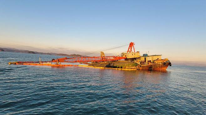 A호는 전남 순천시 화포 해역 일원 갯벌 생태계 복원에 동원된 준설 부선으로 선미 부분이 펄에 닿아 침수되고 있었습니다.