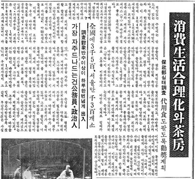 | ▲ 1967년 4월 29일 <동아일보> 기사 ‘소비생활 합리화와 다방' |