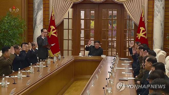 (서울=연합뉴스) 북한 노동당 중앙위원회 정치국은 1일 김정은 국무위원장이 참석한 가운데 회의를 열어 이달 하순 당중앙위원회 제8기 제9차 전원회의를 소집할 것을 결정했다고 조선중앙TV가 2일 보도했다. [조선중앙TV 화면] 2023.12.2