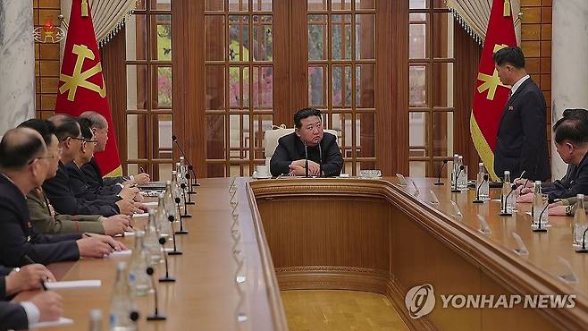 (서울=연합뉴스) 북한 노동당 중앙위원회 정치국은 1일 김정은 국무위원장이 참석한 가운데 회의를 열어 이달 하순 당중앙위원회 제8기 제9차 전원회의를 소집할 것을 결정했다고 조선중앙TV가 2일 보도했다. [조선중앙TV 화면] 2023.12.2