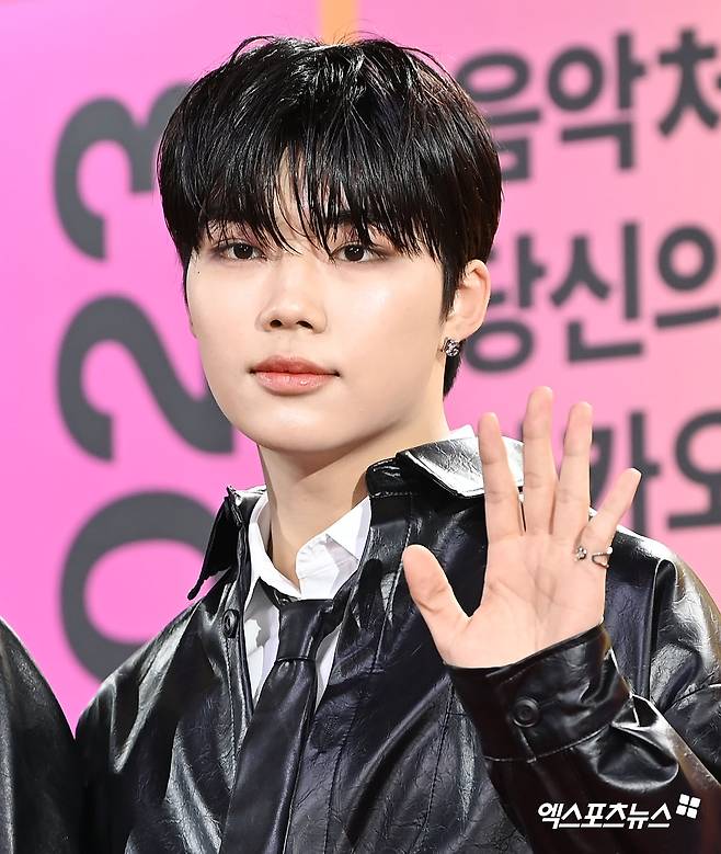 이날 행사에 참석한 제로베이스원 박건욱이 포즈를 취하고 있다.