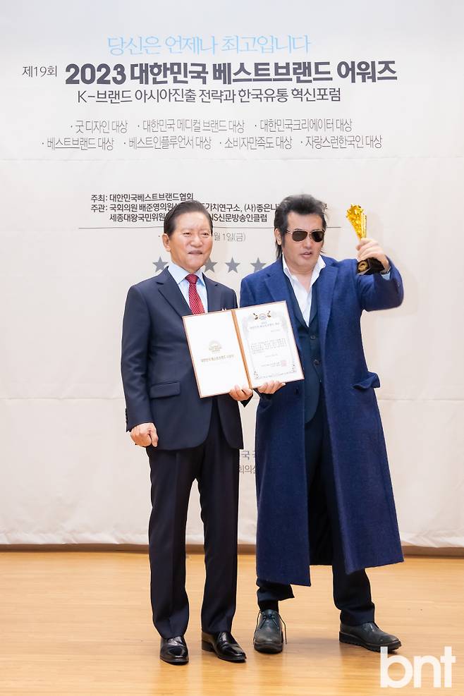 '2023 베스트브랜드대상'에 선정된 김보성 대표가 기념촬영을 하고 있다.