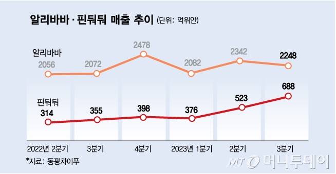 같은 기간 알리바바 매출이 2~3% 성장에 그치는 등 정체한 반면, 핀둬둬는 해외 이커머스플랫폼 활성화로 매출이 급증한 것이다. 매출 크기로만 따지면 전자상거래, 물류, 클라우드컴퓨팅을 포함한 알리바바가 크지만 핵심 사업인 전자상거래는 핀둬둬가 테무의 급성장에 힘입어 알리바바를 따돌리는 분위기다.