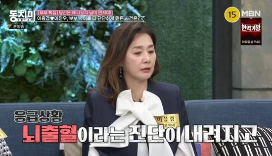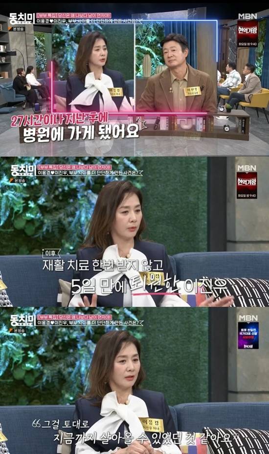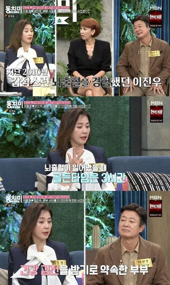 이날 이응경은 지난 2010년 이진우가 갑작스러운 뇌출혈을 경험했던 때를 떠올리며 "보통 뇌출혈이 일어나면 3시간이 골든타임이라고 하는데, 이진우 씨는 27시간이 지나서 가게 됐다"고 말했다.