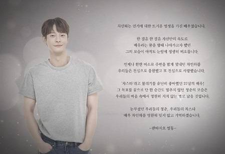 이어 "'차스타'라고 불리기를 유난히 좋아했던 27살의 배우. 그 목표를 꿈으로 단 한 순간도 멈추지 않았던 청춘의 모습은 우리들의 마음 속에서 영원히 지지 않는 별로 남을 것"이라며 "눈부셨던 우리들의 청춘, 우리들의 차스타 배우 차인하를 영원히 잊지 않고 기억하겠다"고 전했다.