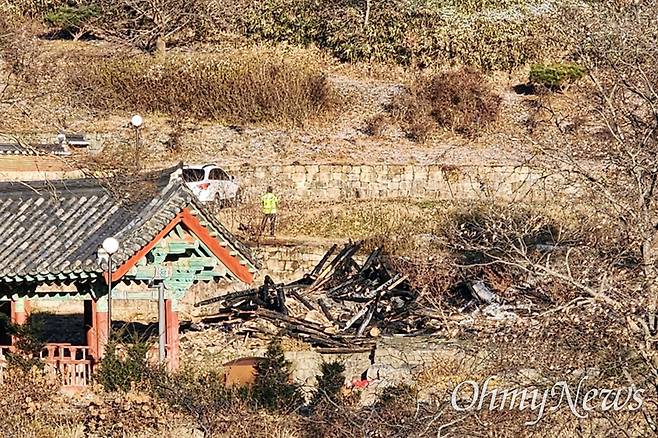 | ▲ 자승 전 총무원장이 숨진 다음날인 30일 오전 경기 안성시 칠장사에 전날 화재의 흔적이 남아 있다. |