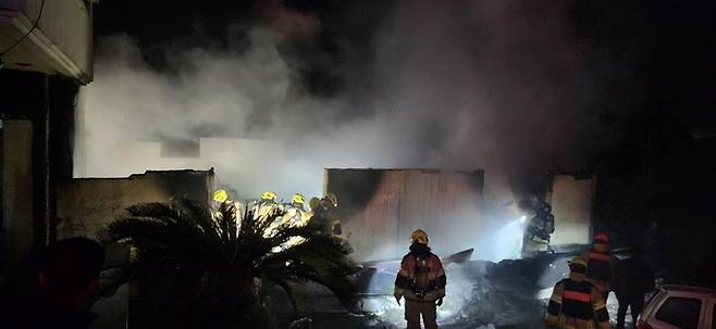 고인은 앞서 1일 오전 1시 9분쯤 서귀포시 표선면의 한 주택 옆 창고에서 발생한 화재를 진압하던 중 거센 불길에 무너져 내린 창고 외벽 콘크리트 처마에 머리를 크게 다쳐 병원으로 이송됐으나 결국 숨졌다.