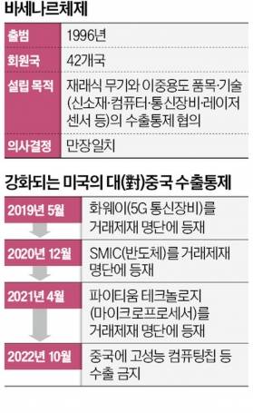 코콤은 냉전시대 서방이 공산권에 대한 전략물품 수출을 막기 위해 도입한 수출통제체제다. 이후 냉전시대가 막을 내리자 국제사회는 1996년 바세나르체제를 출범시켜 코콤을 대체했다. 문제는 바세나르체제에는 러시아를 비롯해 구공산권 국가들이 포함돼 미국의 대중국 수출통제 움직임에 비협조적 태도를 취하고 있는 점이다. 정부 관계자는 “미국이 작년부터 바세나르 회의에서 양자컴퓨팅 등 첨단기술에 대한 대중국 수출통제를 원했지만, 러시아가 반대해 무산됐다”며 “미국이 다자주의 접근을 다시 언급하고 있는 이유”라고 설명했다.
