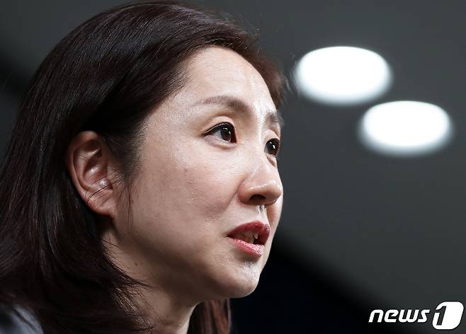 (서울=뉴스1) 오대일 기자 = 김수경 대통령실 신임 대변인이 3일 용산 대통령실 청사 브리핑룸에서 임명 소감을 밝히고 있다. 2023.12.3/뉴스1
