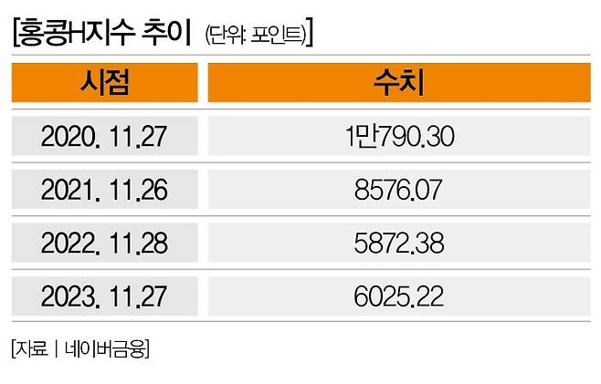 문제는 홍콩H지수의 반등 가능성이 낮다는 거다. ELS를 설정했던 2021년 상반기 1만600포인트대를 기록했던 홍콩H지수는 지난 11월 27일 6025.22포인트로 43.1%나 하락했다. 홍콩H지수가 ELS 만기 시점에 설정 당시의 70% 수준인 7500포인트를 웃돌아야 손실을 피할 수 있다.