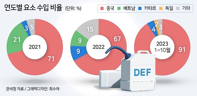 2년 전 '요소수 대란'에 낮춘다던 中 의존도 오히려 '71→91%'