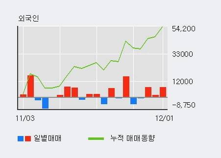 지난 한달을 기준으로 보면 외국인이 5.2만주를 순매수했고, 기관도 1,028주를 순매수했다. 반면 개인들은 5.3만주를 순매도한 것으로 나타났다. 같은 기간 이 종목의 거래비중은 외국인과 개인이 각각 20.5%, 77.9%로 비중이 높다.