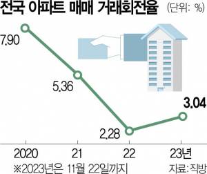 고금리 장기화와 경기둔화 우려에 아파트 구매심리가 위축되며 올해 매매거래 회전율이 역대 두 번째로 낮은 3%대를 기록한 것으로 나타났다.