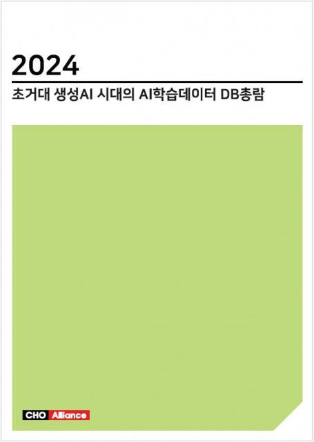 산업조사 전문 기관인 씨에치오 얼라이언스(CHO Alliance)가 '2024 초거대 생성AI 시대의 AI학습데이터 DB총람' 보고서를 발간했다.