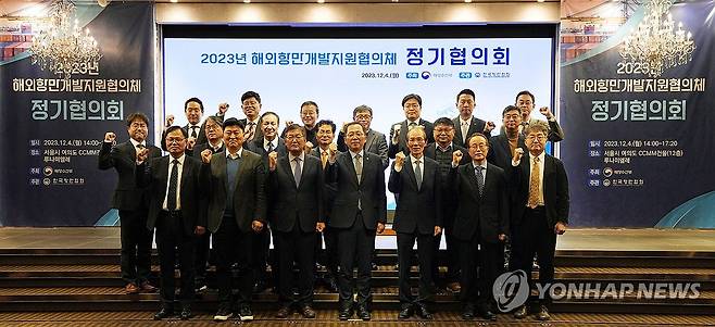 (서울=연합뉴스) 조승환 해양수산부 장관이 4일 서울 영등포구 루나미엘레에서 열린 2023년 해외항만개발 지원협의체 정기협의회에서 참석자들과 기념 촬영하고 있다. 2023.12.4 [해양수산부 제공. 재판매 및 DB 금지]
