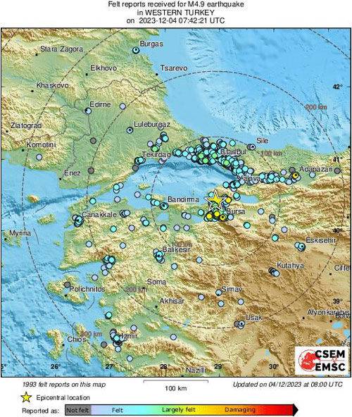 4일(현지시간) 오전 11시 42분쯤 튀르키예 최대 도시인 이스탄불 인근에서 규모 4.9의 지진이 발생했다고 유럽지중해지진센터(EMSC)가 밝혔습니다.