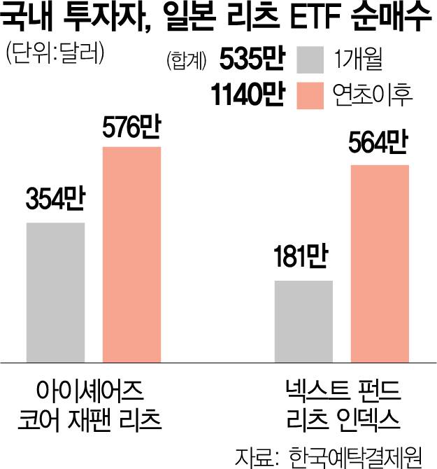 역대급 엔저(엔화 약세) 현상이 장기화되는 가운데 일본 리츠(REITs·부동산 투자회사) 관련 상장지수펀드(ETF)로 뭉칫돈이 몰리고 있다.