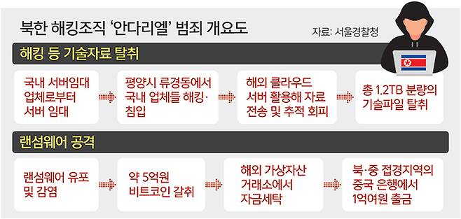 평양에 근거지를 둔 북한 해킹조직이 국내 방산 기술 자료를 대거 탈취하고, 랜섬웨어 공격을 통해 5억원에 달하는 가상자산을 강탈한 정황이 포착됐다. 정치적 위협과 경제적 이득을 위해 국내외 업체를 겨냥한 북한 해커들의 사이버 공격이 끊이지 않으면서 국가 사이버 안보 역량을 더 끌어올려야 한다는 목소리가 나온다.