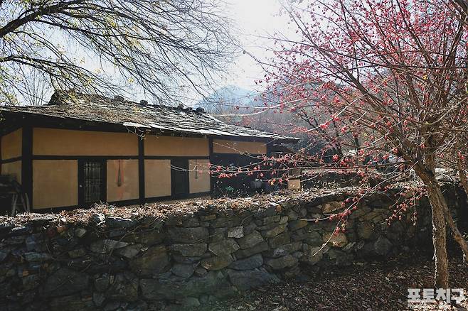 정선 아라리촌 내에 산수유나무가 여럿 보입니다.