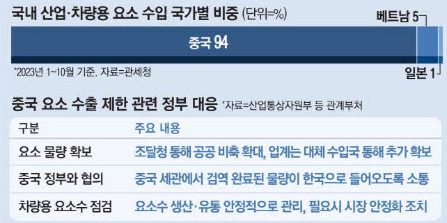정부도 현황을 추가적으로 파악하고 있다. 최남호 산업부 대변인은 “중국 통관에서 (요소 수입이) 지연된 건 사실”이라면서도 “여러 경로를 통해 확인한 결과 정치적인 이유는 없고 중국 내부적으로 수요가 타이트한 경제적 요인 때문”이라고 말했다.