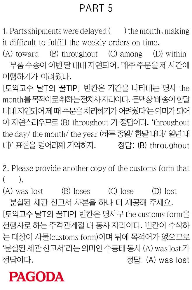 [파고다 강남 1타토익 RC김나래] PART 5