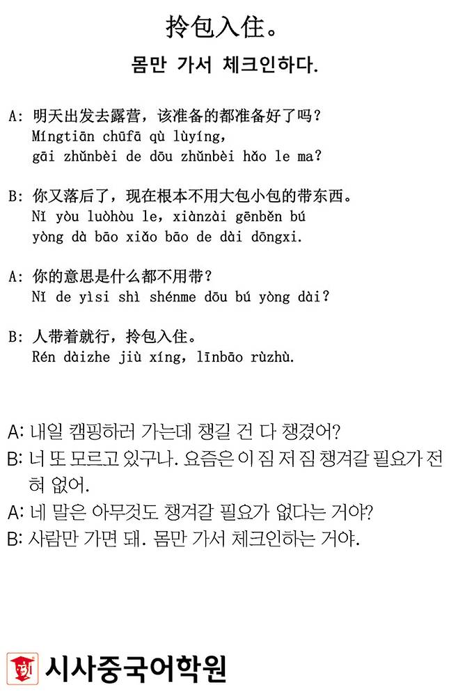 [시사중국어학원의 리얼 중국어 회화] 몸만 가서 체크인하다.