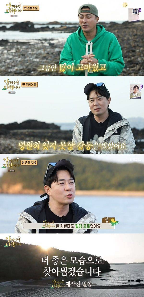 4일 방송된 MBC 예능프로그램 '안 싸우면 다행이야'(이하 '안다행')최종화에서는 MC 안정환과 붐이 3년 반 만에 무인도로 떠난 모습이 그려졌다.