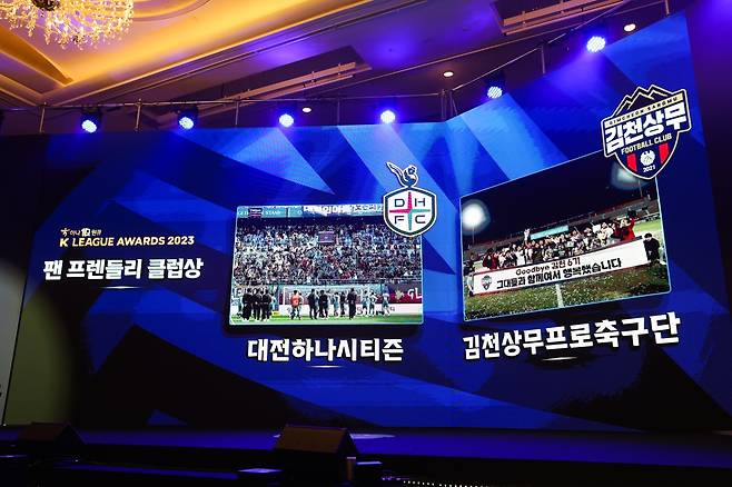 ‘하나원큐 K리그 2023’ 우승을 차지한 김천상무는 홍보마케팅 성과도 최고로 평가됐다. 김천상무는 극적인 역전 우승 드라마를 쓰며 스포트라이트를 독점했다. 이어 팬 프렌들리 클럽상까지 수상해 2023시즌 K리그2에서 가장 빛나는 별로 떠올랐다.
