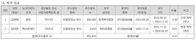 주식담보대출은 보로노이가 지난 6월 유상증자를 하는 과정에서 생겨났다. 한투증권은 지난 6월 보로노이의 450억원 규모의 유상증자를 대표주관했다. 김 대표는 유상신주 인수에 필요한 자금 215억원을 주식담보대출을 통해 마련했다. 1년 만기 계약을 3개월 단위로 연장하는 조건이다.