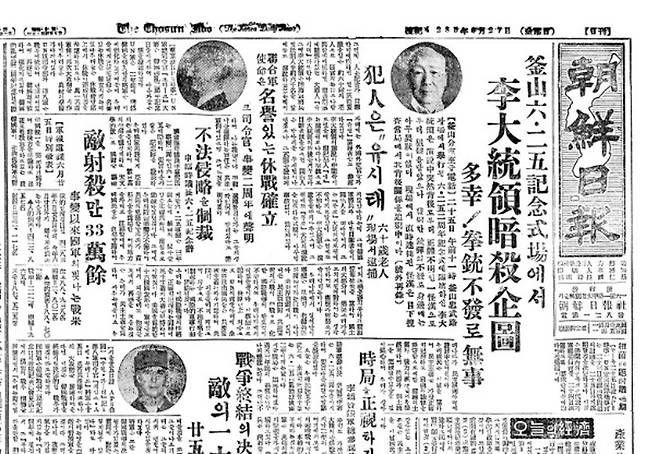 이승만이 참전국들의 분발을 은근히 독려하고 있을 때인 그날 오전 10시 50분경이었다. 연설 중인 이승만의 등 뒤에서 총을 꺼내 드는 이가 있었다. 이승만의 3m 뒤 귀빈석에 앉아 있던 독립운동가 유시태였다.